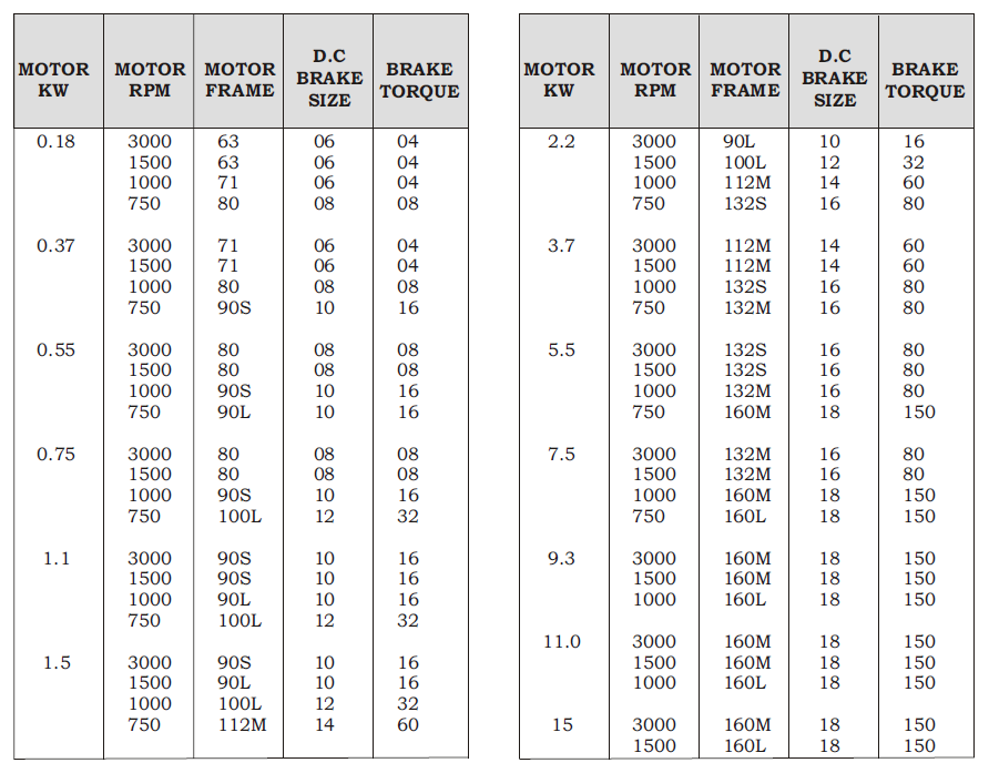 BRAKE MOTORS: